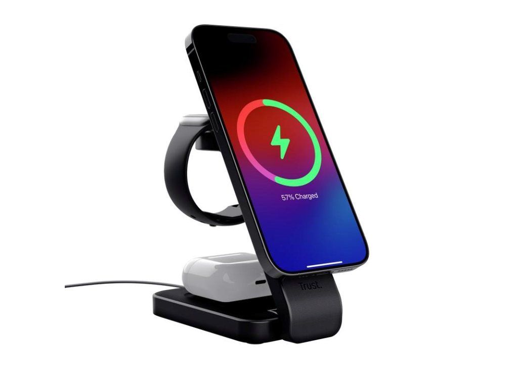 TRUST Bezdrátová nabíječka 3v1 Viro, pro IPhone, Apple Watch a Airpods, černá 25464 Trust