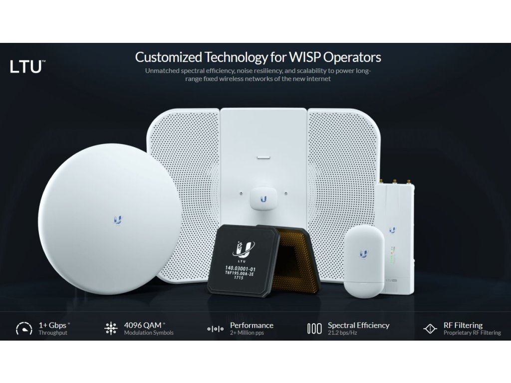 Popis produktu LTU-Pro je PtMP klientská jednotka pro 5GHz pásmo s anténním ziskem 24dBi a proprietární bezdrátovou technologií LTU, která není postavena na limitovaném standardu 802.11, čímž lze dosáhnout reálné TCP/IP rychlosti 600Mb/s+ (až 1Gb/s+ s budoucím fw), modulace až 4096 QAM (v budoucím fw) a vyšší spektrální účinností 21,2bps/Hz, což je oproti 802.11AC standardu dvojnásobek! Funkce PtMP klientská jednotka 1024 QAM (v budoucím fw až 4096 QAM) 10/20/30/40/50MHz šířka kanálu (v budoucnu až100MHz!) Nastavení je řešeno centrálně ze strany AP Frekvenční oddělení Tx a Rx frekvence Automatické nastavení výkonu Podpora režimu bridge a router Možnost nastavení odlišné Tx a Rx frekvence Technologie LTU umožňuje používat různé frekvence pro vysílání (Tx) a příjem (Rx), aby se zabránilo rušení, čímž se zvýší propustnost vaší sítě. Kompatibilita LTU je zcela nová platforma založená na proprietární technologii, která nepoužívá protokol 802.11. Není tak kompatibilní se zařízeními z řady airMAX M5 nebo airMAX 5AC. Na druhou stranu, ačkoliv je LTU založeno na technologii, kterou používají produkty airFiber, pro komunikaci používají odlišný protokol a LTU produkty tak nejsou kompatibilní ani s produkty AF-5X nebo AF-5/5U. Software Kromě vlastního webového managementu jsou LTU produkty podporovány i softwarem UNMS pro centrální řízení a správu Ubiquiti zařízení. Obsah balení * zařízení * držák na stožár * gigabitový PoE napájecí adaptér 24V/0,5A * napájecí kabel Technické parametry Bezdrátové vlastnosti Maximální modulace: 1024 QAM Předozadní poměr [dB]: 27 Bezdrátové frekvence: 5GHz WiFi standardy: LTU Vysílací výkon 5GHz [dBm]: 22 5GHz MIMO: 2x2 Vyzař. úhel v azimutové rovině (-6dB) [°]: 14 Vyzař. úhel v elevační rovině (-6dB) [°]: 14 Typ antény: Vestavěná Počet vestavěných antén: 2 Zisk antény [dBi]: 24 Fyzické charakteristiky Použití: Venkovní Tlačítka: Reset Provozní teplota [°C]: -5 až 40 Hmotnost [g]: 1300 Hloubka [mm]: 174 Šířka [mm]: 317 Výška [mm]: 317 Konektory a rozhraní Rychlosti LAN: (1) 10/100/1000Mbps Gigabit LAN: Ano Napájení Napájení přes PoE: 22 .. 26V DC Typy PoE: PoE-In (pouze) Max. spotřeba energie [W]: 9 Software Operační mód: Klient, Klient Router (wisp) Operační systém: airOS LTU Podpora IPv6: Ano Výchozí IP adresa: 192.168.1.20 Výchozí jméno a heslo: Ubiquiti/Ubiquiti