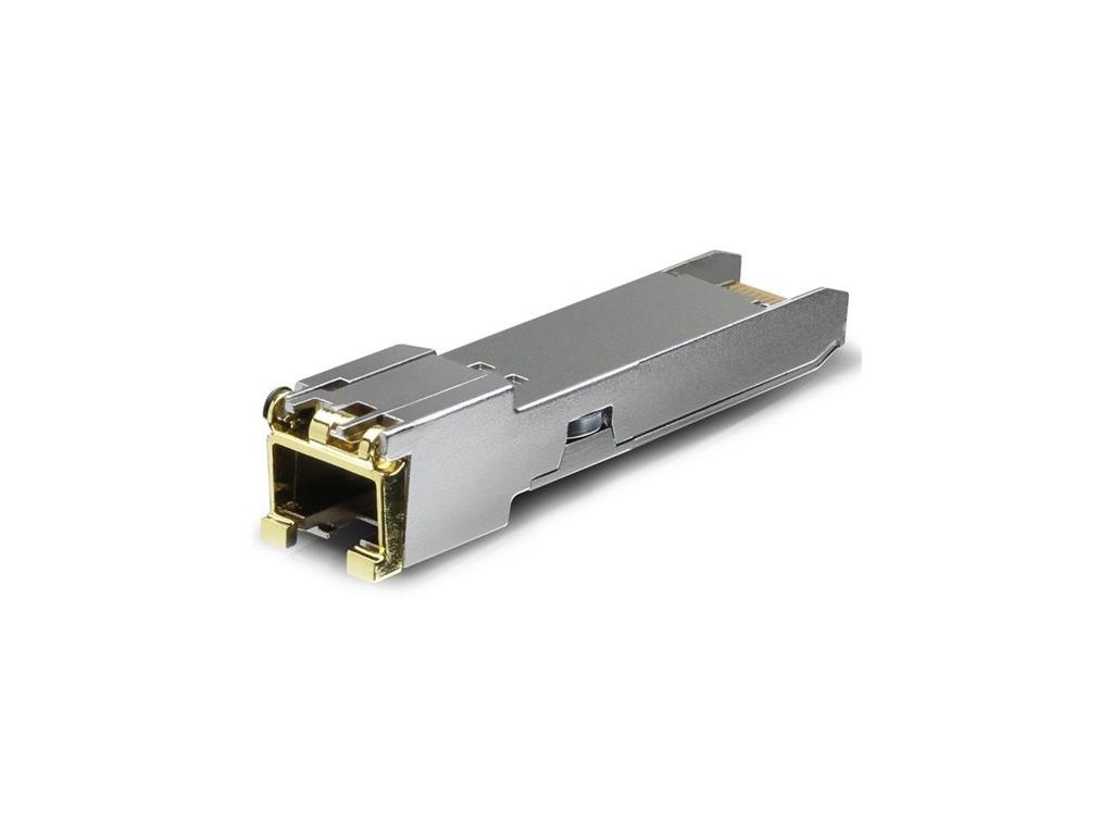 UACC-CM-RJ45-MG je univerzální 10-Gigabitový SFP+ metalický modul od značky Ubiquiti s konektorem RJ45 pro metalický kabel s možností data rate 1G / 2.5G / 5G i 10 Gbps. Dosah modulu je při použití Cat.6A kabelu až 100 metrů a to i při rychlosti 10 Gbps. Max. spotřeba modulu je 1.9W a je schopen pracovat při teplotách od 0 do 70°C.