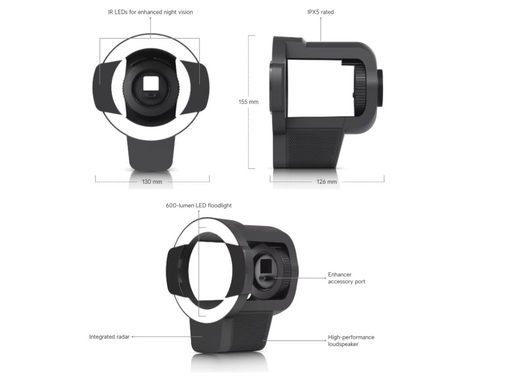 Ubiquiti UACC-Pro-Bullet-Enhancer-B - Černé provedení Příslušenství pro kamery Ubiquiti G6 Pro Bullet a AI Pro, které rozšiřuje možnosti osvětlení i detekce. Kombinuje dlouhodosahové IR LED, přisvětlovací reflektor a radarovou detekci pro lepší pokrytí prostoru a reakce na pohyb. Mechanické provedení *Rozměry: 130 × 155 × 126 mm *Hmotnost: 490 g *Materiál krytu: Hliníková slitina, polykarbonát *Materiál držáku: Hliníková slitina *Stupeň krytí: IPX5 Hardware *Radar: Ano *Doporučená montážní výška: 2–5 m *Doporučený náklon montáže: 0–30° *Detekční dosah (osoba): 0,5–20 m *Detekční dosah (vozidlo): 2–35 m *Detekční úhel: H: 110° *Přesnost vzdálenosti: 0,5 m *IR dosah: UVC-G6-Pro-Bullet: 60 m, UVC AI Pro: 40 m *Světlo: 5700K, 600 lm *Reproduktor: Ano *Napájení: Kamera G6 Pro Bullet, AI Pro *Napájecí zdroj: 5 V DC, 3 A *Maximální spotřeba: 15 W *Provozní teplota: -30 až 50 °C *Provozní vlhkost: 10–90 % (nekondenzující) Certifikace *FCC, IC, CE NDAA compliant: Ano Software *Webová aplikace: UniFi Protect *Mobilní aplikace: UniFi Protect (iOS a Android) Web výrobce: https://techspecs.ui.com/unifi/cameras-nvrs/uacc-pro-bullet-enhancer#datasheet