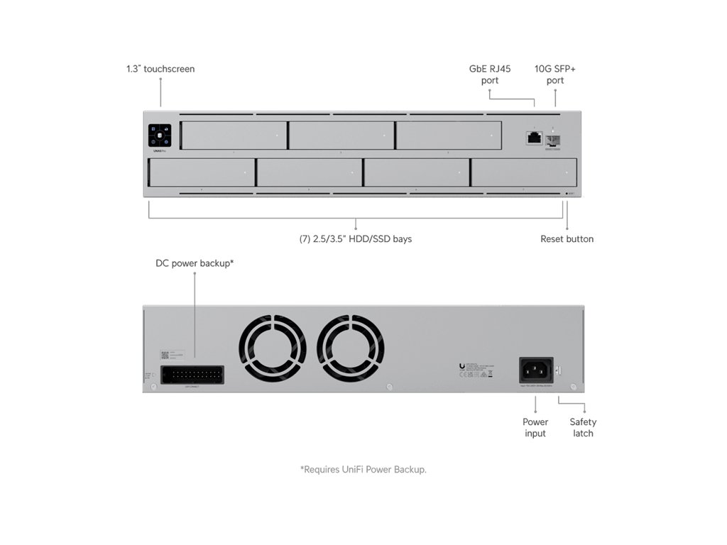 Ubiquiti UniFi UNAS-PRO NAS server, 7x 3,5/2,5" disk HDD/SSD, RAID, 1GbE, 1x SFP+