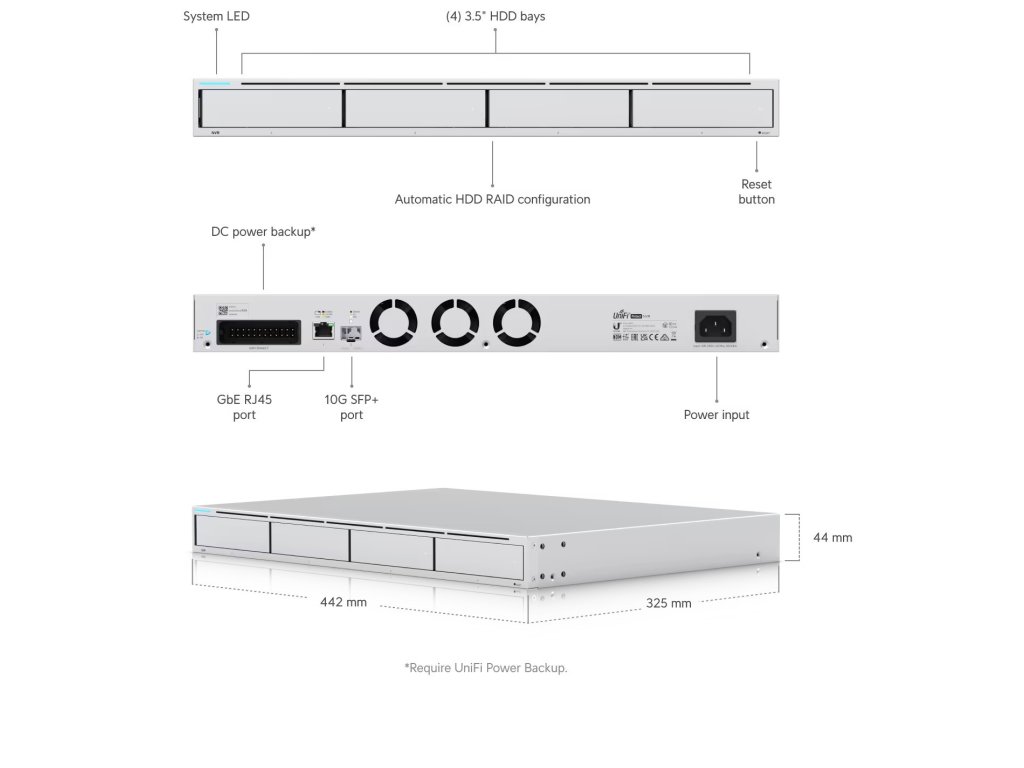 Popis produktu Do UNVR můžete nahrát až 30 dnů videa s rozlišením 4K až 15 kamer nebo s rozlišením Full HD až 50 kamer (4x 8TB disk, RAID 5). 4 pozice pro disky, RAID1 a RAID5 UniFi NVR je Enterprise zařízení, na kterém je předinstalovaný software UniFi Protect a je vybaveno 4 šachtami, do kterých lze umístit jak 2,5'' tak 3,5'' disky. Disky jsou přístupné z předního panelu, takže jejich montáž a výměna jsou opravdu jednoduché úkony. Zařízení je možné do sítě připojit prostřednictvím SFP+ portu nebo 1Gbit ethernetu a namontovat lze do běžného 19'' racku, kde zabere výšku 1U. Přistupujte odkudkoliv K UNVR lze přistupovat ze stolního počítače, notebooku, ale také tabletu nebo mobilního telefonu. K dispozici jsou mobilní aplikace pro iOS i Android. Obsah balení * zařízení * napájecí kabel * Úchyty do 19'' racku * racková sada Technické parametry Fyzické charakteristiky Provedení: Rackmount Počet U pozic: 1 Provozní teplota [°C]: -5 až 40 Hmotnost [g]: 5200 Hloubka [mm]: 325 Šířka [mm]: 442 Výška [mm]: 44 Hardware Počet podporovaných IP kamer: 50 Počet podporovaných HDD: 4 Podporovaná kapacita HDD [TB]: 8 Konektory a rozhraní Rychlosti LAN: (1) 10/100/1000Mbps Optické rozhraní: (1) 1/10Gbps Napájení Max. spotřeba energie [W]: 100 Software Úroveň RAID: 1 - mirroring, 5 - striping