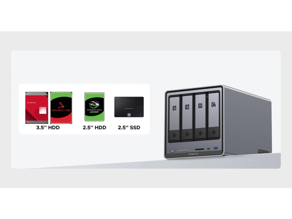 UGREEN NASync DXP4800 Plus (6C/Gold8505/4,4GHz/8GBRAM/4xSATA/2xM.2/1x2,5GbE/1x10GbE/2xUSB2.0/2xUSB3.2/1xUSB-C/HDMI/SD) 35261