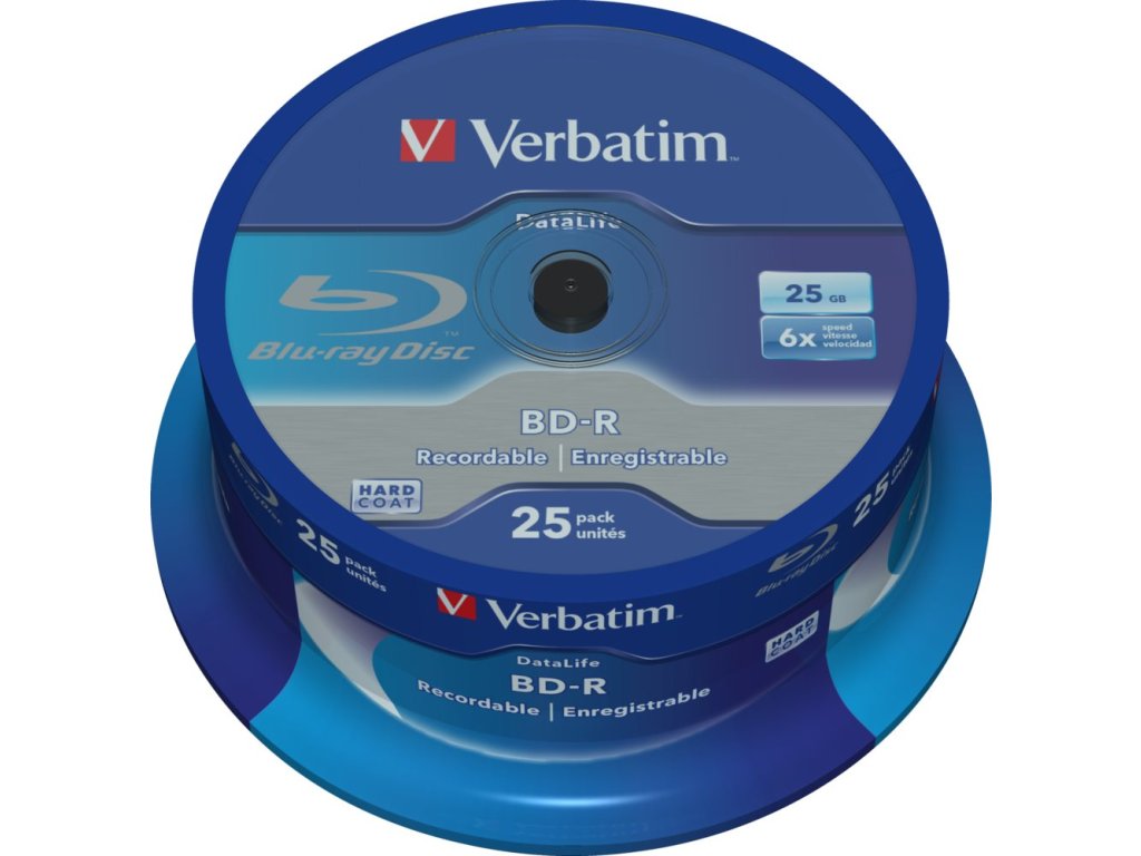 VERBATIM BD-R SL Datalife (25-pack)Blu-Ray/Spindle/6x/25GB WHITE BLUE SURFACE 43837 Verbatim
