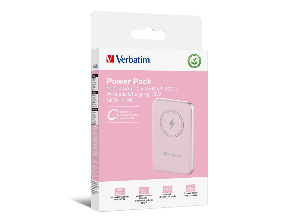 VERBATIM Powerbanka Charge 'n' Go, Magnetická, 10000 mAh, USB-C, Růžová 32248 Verbatim