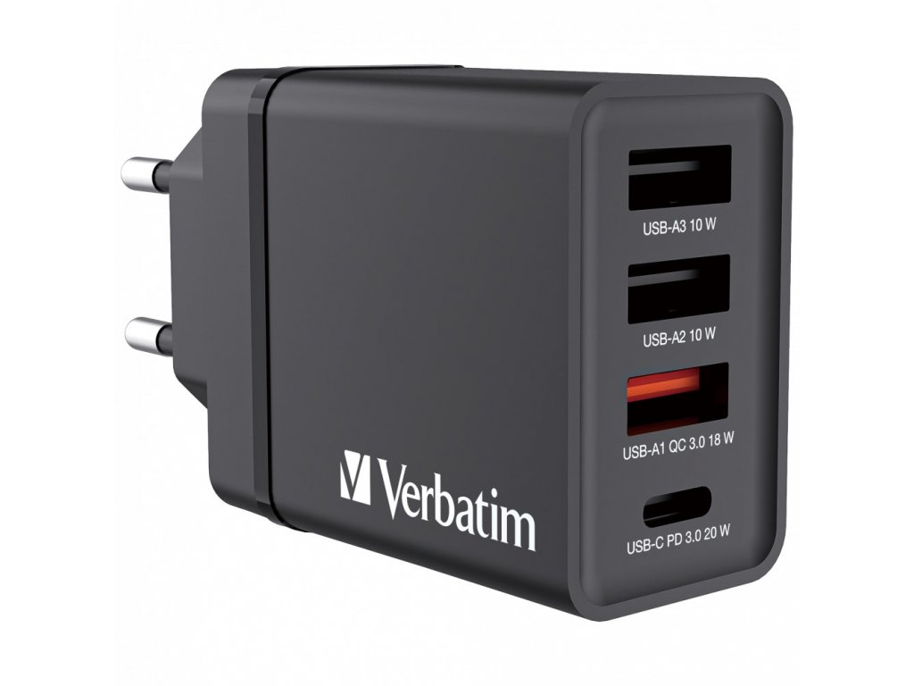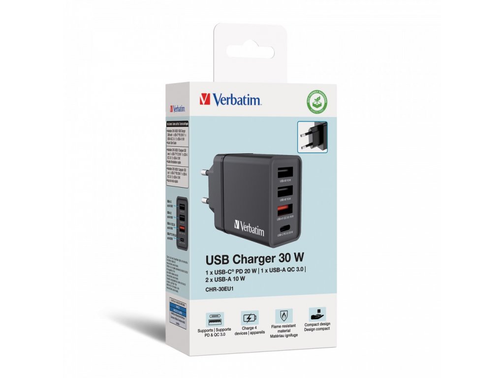 VERBATIM Univerzální adaptér CHR-30EU2, 30W, 1x USB-C, 3x USB černá 49700 Verbatim