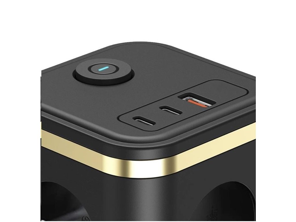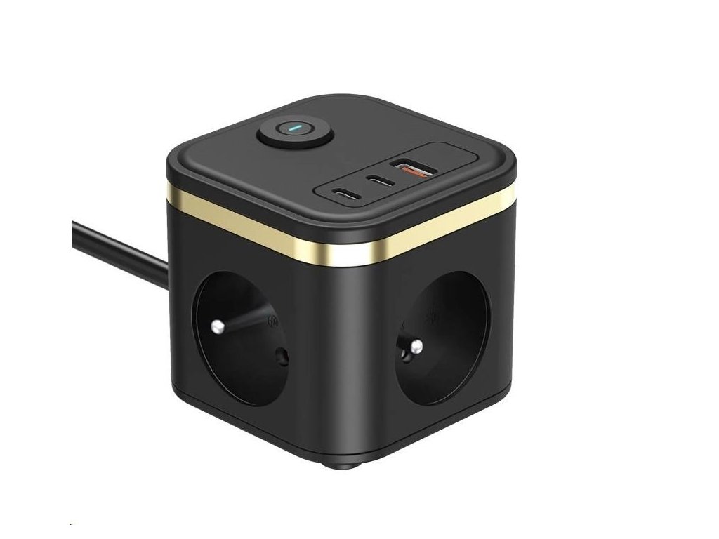 Viking síťový adaptér YC33, 3x 230 V, 1x USB-A, 2x USB-C, tlačítko ON/OFF, délka 1,4 m, černá VYC33B