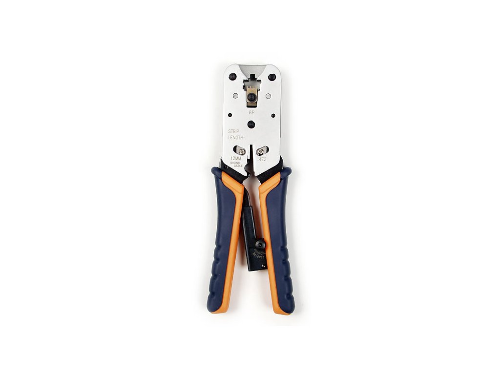 Kleště UTP RJ45 s račnou přímé, masivní + ořezávač PŘEHLED · Masívní kleště pro krimpování konektorů RJ45 · Lisovací kleště jsou vybaveny račnou pro pohodlné stlačení konektorů · Krimpování je díky tomu snadné a pohodlné · Ořezávač izolace Vám umožní ořezat izolaci bez použití dalšího nářadí, tím zkrátíte čas potřebný na montáž opravdu na minimum · Integrovanou součástí kleští je i nožík pro přecvaknutí UTP kabelu Obrázek je ilustrativní a barvy se mohu lišit.