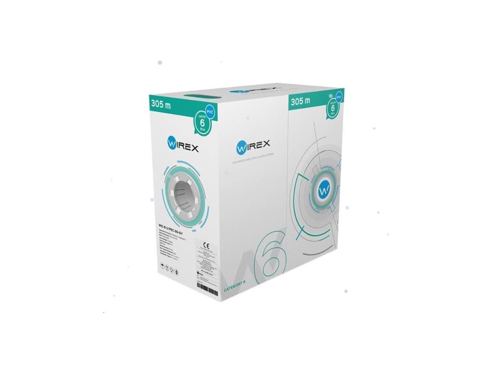 Inštalačné káble WIREX sa vyznačujú vysokou spoľahlivosťou a stabilitou parametrov po celú dobu životnosti inštalovanej metalickej dátovej siete. Zvládajú najnáročnejšie prenosové protokoly, ktoré je možné podľa štandardov prevádzkovať na kabelážach kategórie CAT6. Tento typ kábla je možné inštalovať v rôznych prostrediach, ako sú administratívne priestory alebo dátové centrá. Kábel je dodávaný vo farebnom boxe, vďaka ktorému je možné rýchlo rozpoznať, o aký typ kábla ide v prípade inštalácie, kde sa používa niekoľko typov káblov. Pre prehľadnosť je metráž kábla značená od 0 m do 305 m. Konštrukcia kábla: Medený drôt AWG23 0.55 ± 0.01 mm Izolácia: HDPE 1.0 ± 0.08 mm Hrúbka plášťa: 0.5 mm Priemer kábla: 6.0 ± . samoodvíjacích krabíc