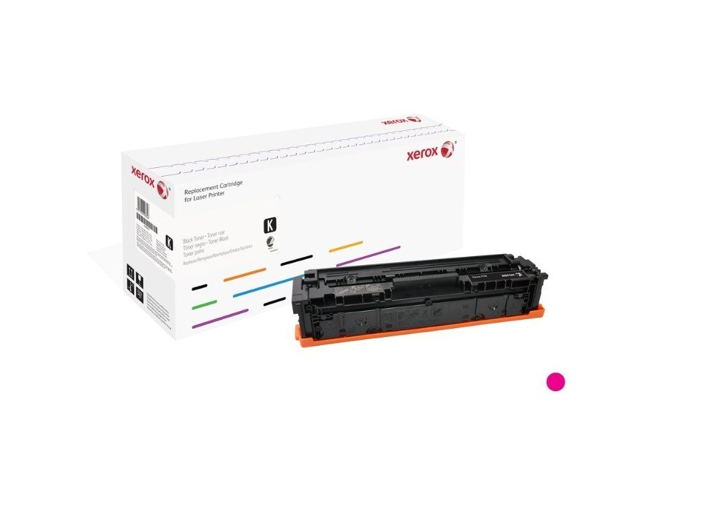 Purpurová tonerová kazeta Ekvivalent k HP CF543A Kompatibilní s HP LaserJet Pro M254 LaserJet Pro M281 LaserJet MFP M280 Tonery od společnosti Xerox poskytují vynikající kvalitu obrazu a vynikající spolehlivost při nízkých nákladech. Ve srovnání s původním tonerem Brother získáte lepší nebo stejný výtěžek stránek, zaplatíte přibližně o 25% méně.