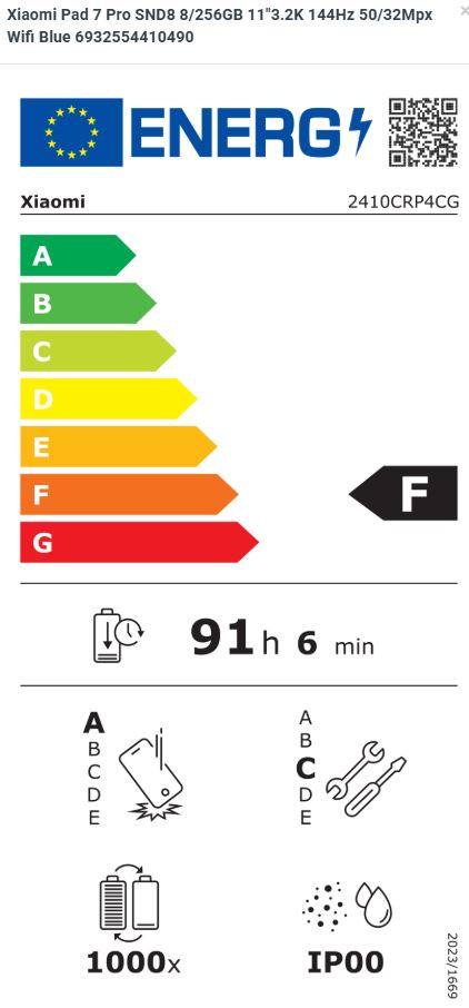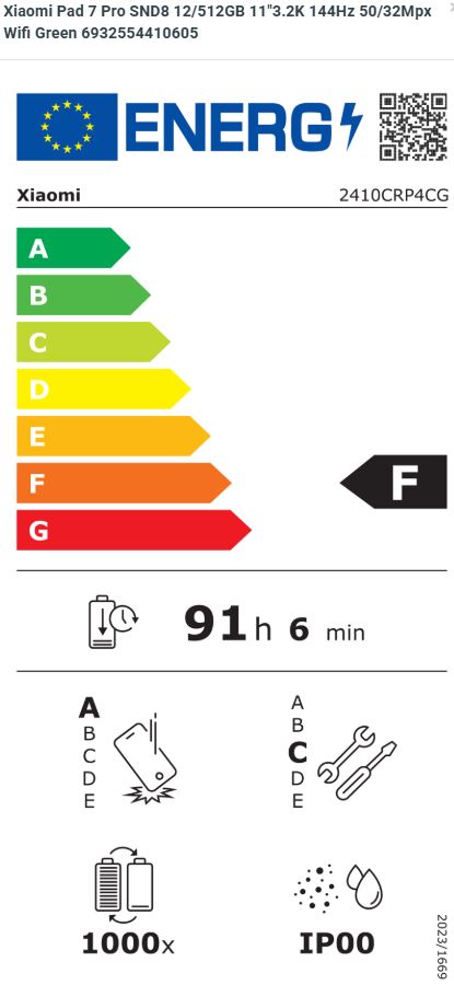 Xiaomi Pad 7 SND7 8/256GB 11"3.2K 144Hz Wifi Green 6932554410476