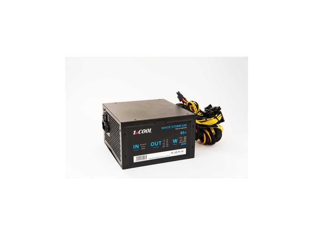 Zdroj 450W 1stCOOL WHITE STORM 450, účinnosť 85+, 12cm ventilátor, bulk ECP-450A-12-85 1stCool