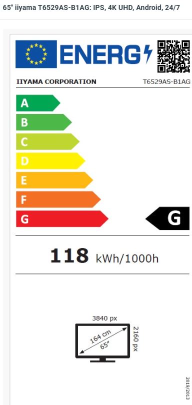 65'' iiyama TE6513A-B1AG: IPS, 4K, 40P, EDLÁ
